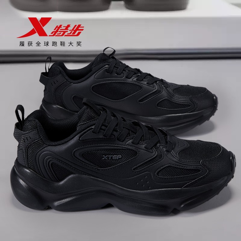 特步男鞋休闲鞋官方旗舰爸爸网面透气轻便运动百搭黑色老爹鞋正品