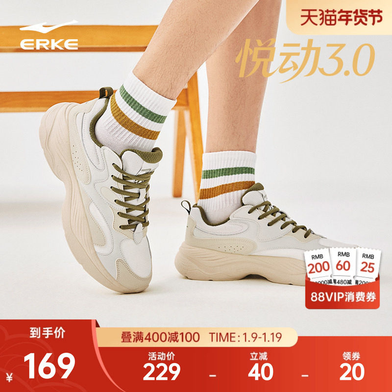 鸿星尔克悦动3新款男鞋休闲鞋冬季百搭老爹鞋增高厚底男士运动鞋