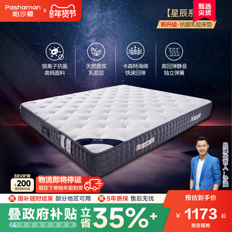 帕沙曼 天然乳胶床垫软硬适中1.8米1.5米席梦思护脊防螨弹簧床垫