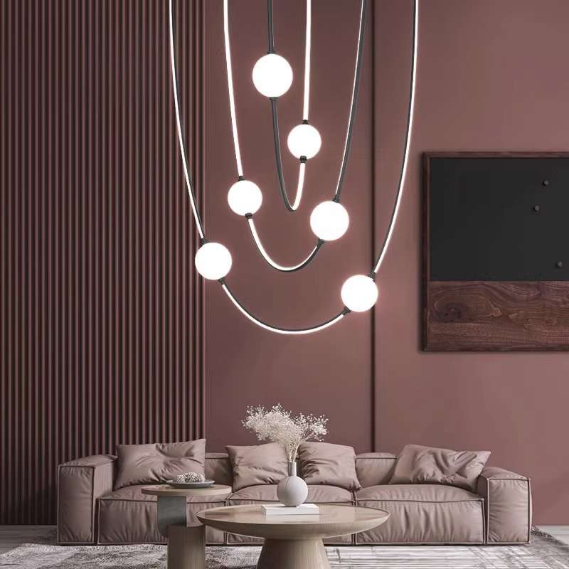 创意极简设计师款客厅线条灯展厅样板间别墅挑高复式楼梯loft吊灯