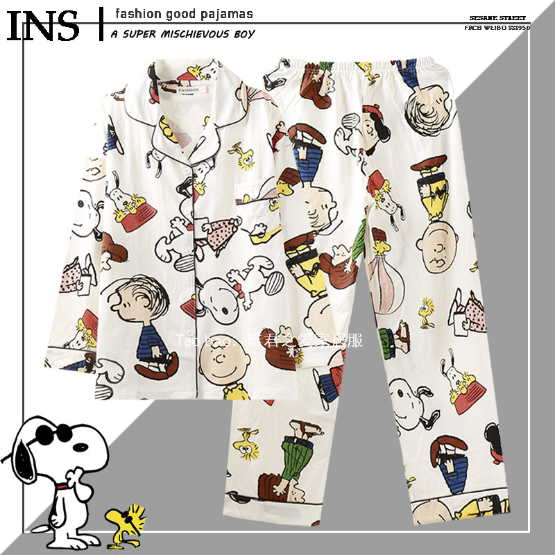 韩版史努比情侣睡衣男女长袖春秋款可爱卡通ins网红风纯棉家居服
