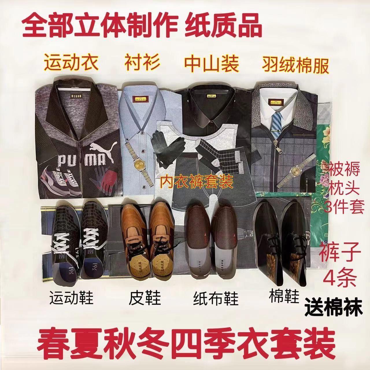 祭祖用品男女四季纸衣服全套老人寒衣清明节十月一寒衣节棉衣裤鞋