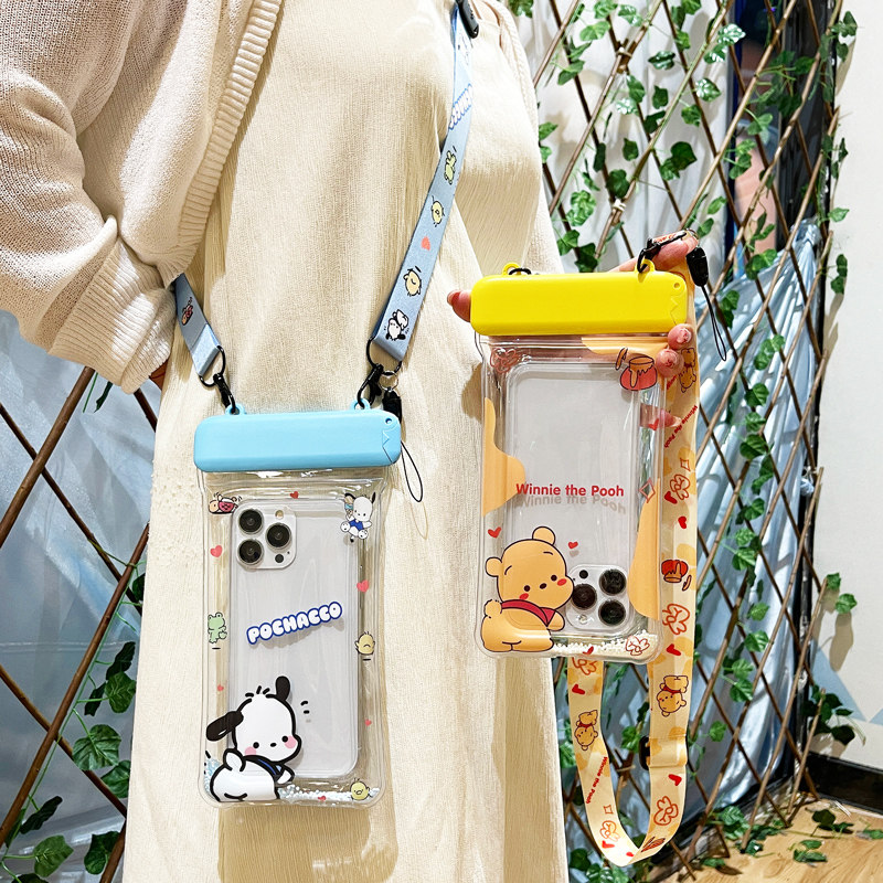 卡通手机防水袋苹果14promax游泳漂流旅游流沙气囊触屏通用斜跨绳