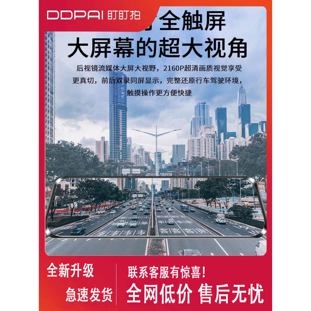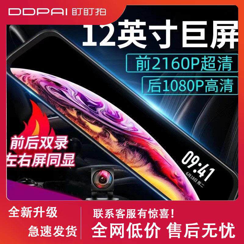 盯盯拍行车记录仪新款12寸全屏超高清4K前后双录免走线 线无线 线