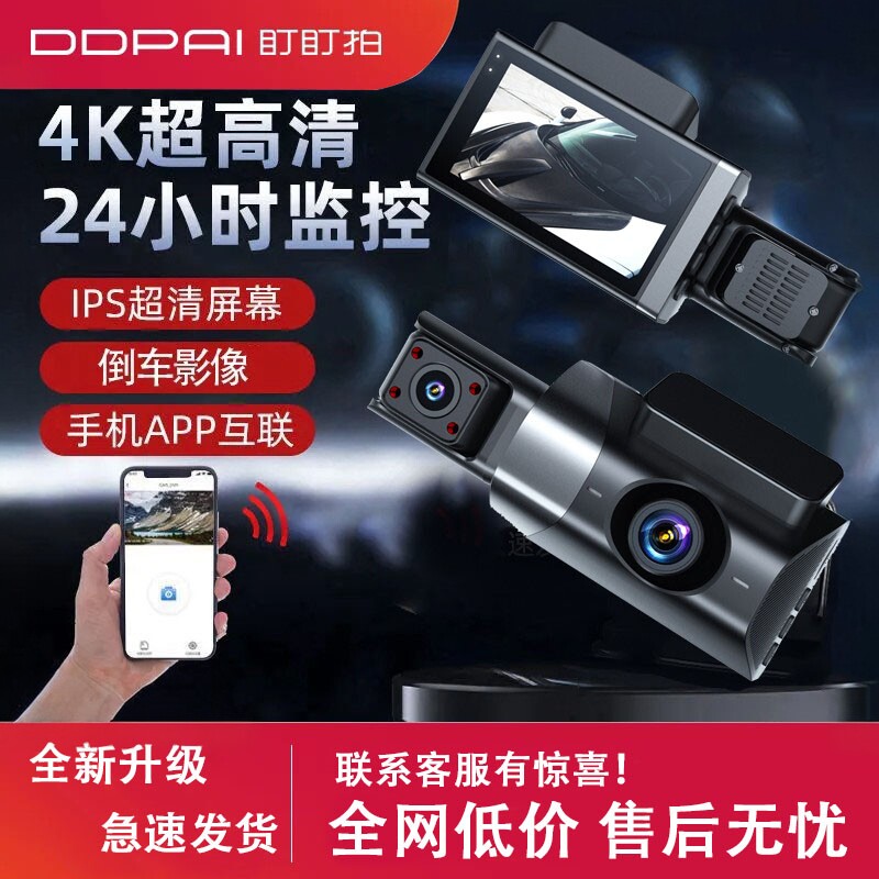盯盯拍行车记录仪新款车内外三镜头4K超高清免走线24H停车监控