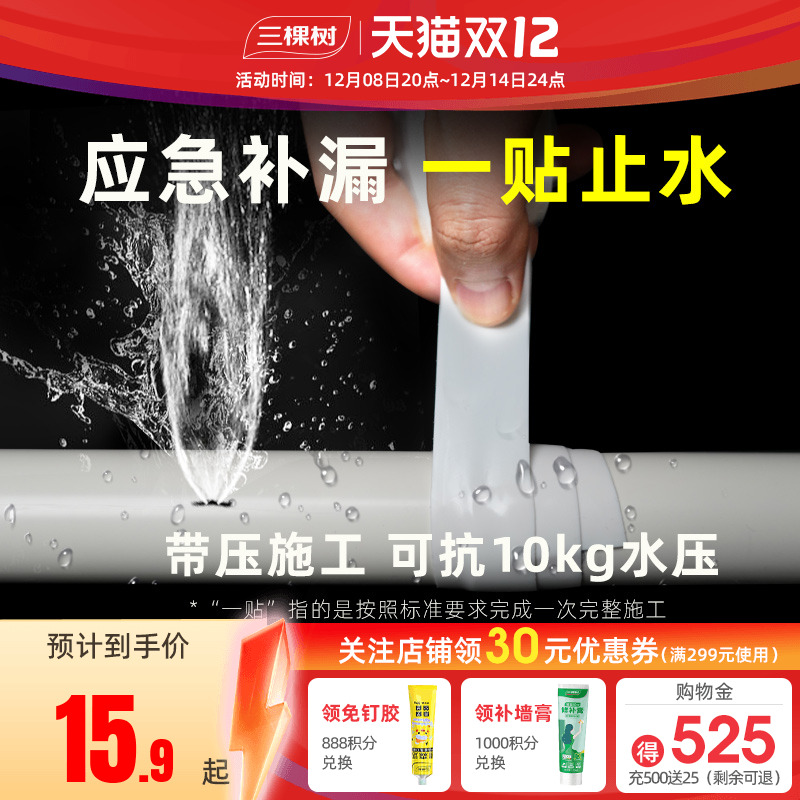 三棵树补漏防水胶带强力水管漏水修补止漏pvc管道堵漏硅胶止水带