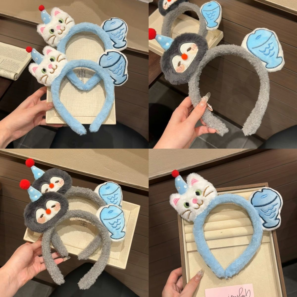 创意猫咪可爱发箍卡通毛绒企鹅小鱼搞怪洗脸拍照头箍发卡头饰发饰