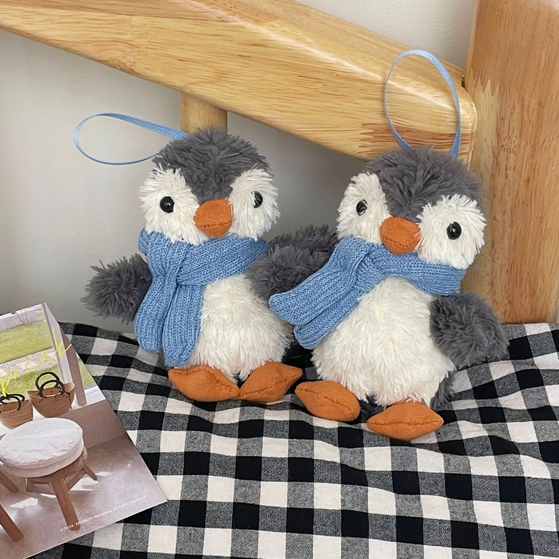 可爱蓝围巾小企鹅挂件ins创意毛绒企鹅钥匙扣包包挂件装饰品礼物