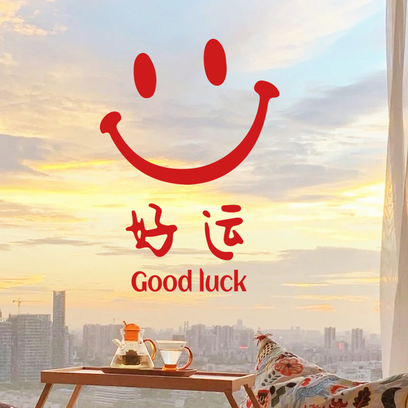 ins好运笑脸玻璃门窗贴纸 卧室窗户镜子新年装饰贴画店铺推拉门贴