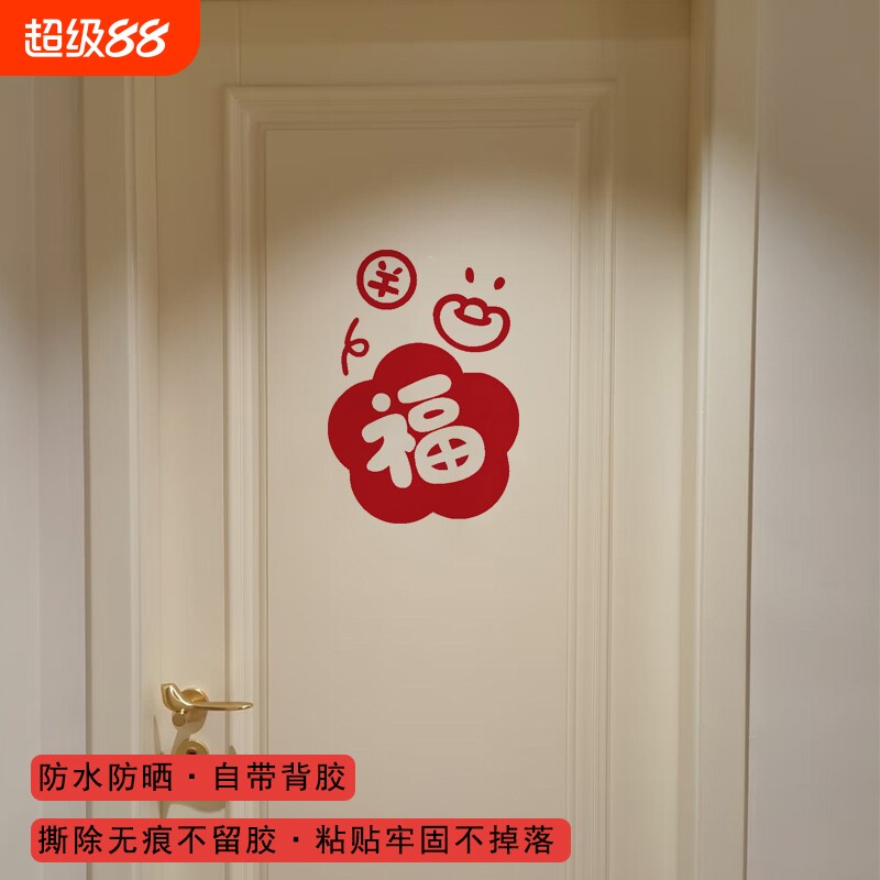 过年福字新年贴纸门窗镜子橱柜春节装饰贴橱窗玻璃氛围感防水客厅
