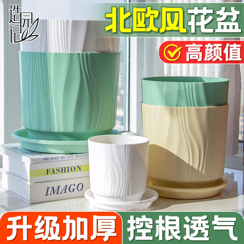 塑料小花盆大号加厚桌面阳台盆栽多肉玫瑰绿萝植物仿陶瓷简约家用