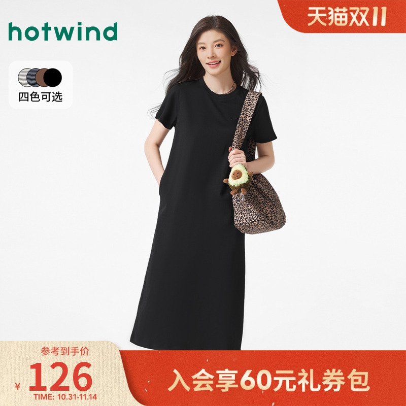 热风连衣裙2025年春季新款女士短袖纯棉基本款针织中长裙时尚百搭