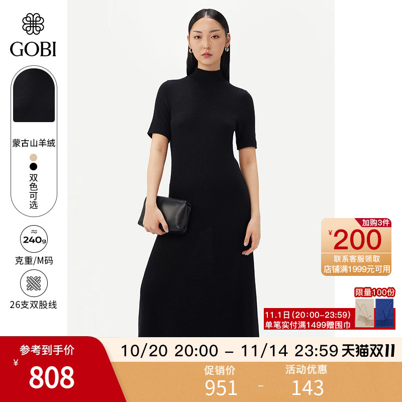 克重高 垂顺有型 女士A字型连衣裙 短袖宽松长裙 显瘦小黑裙 女装