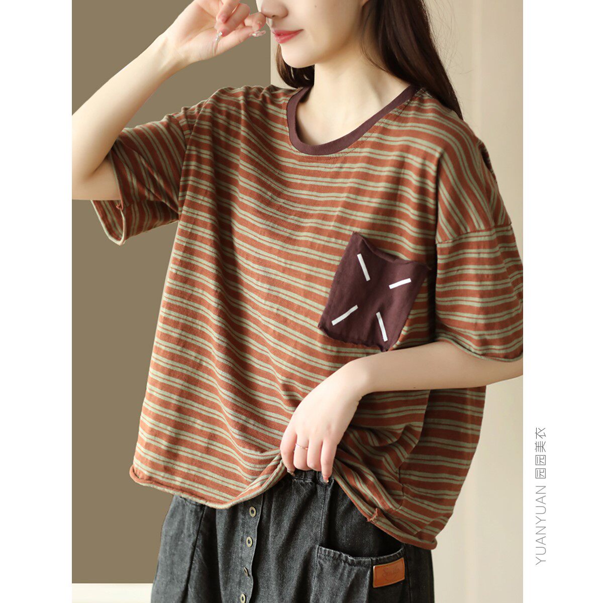 - 棉麻t恤女