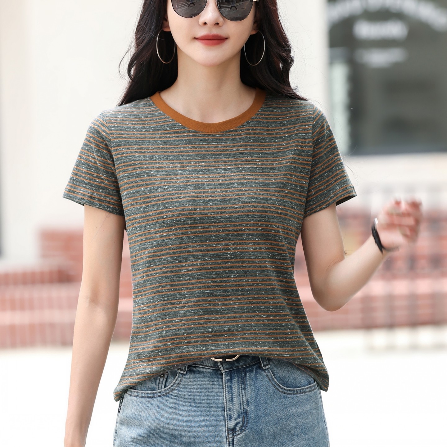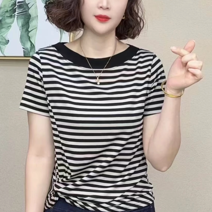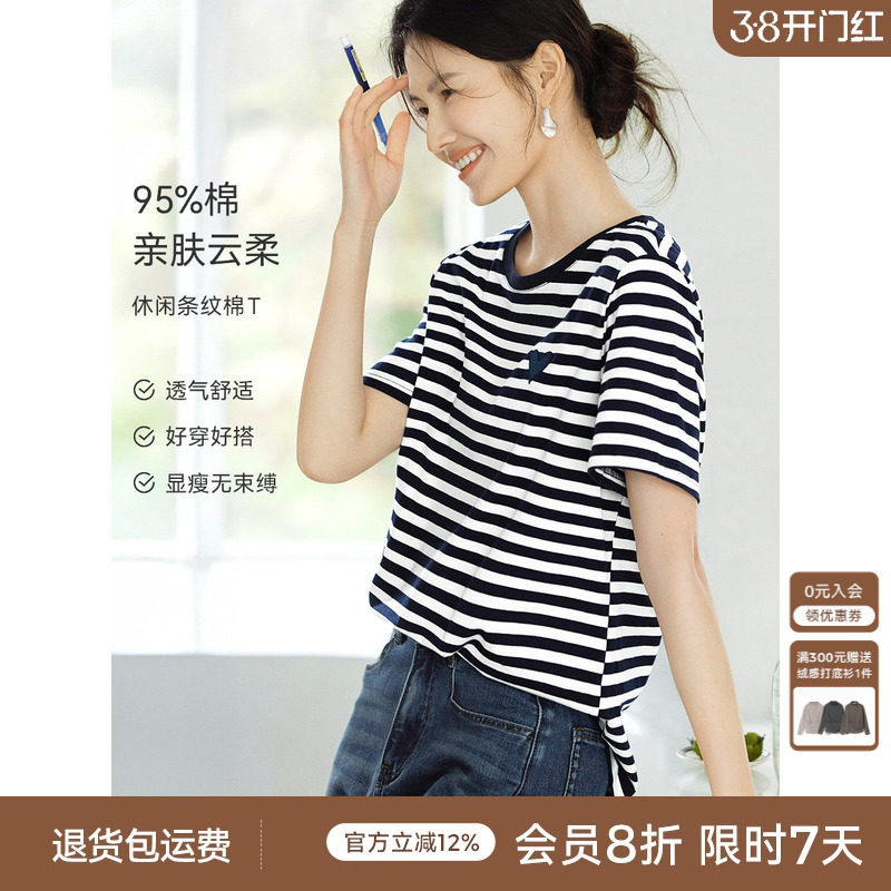 圆领条纹短袖t恤女排行榜