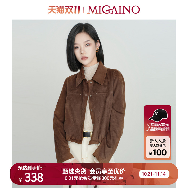 Migaino曼娅奴女装秋冬新款复古高级感时尚气质上衣咖色麂皮外套