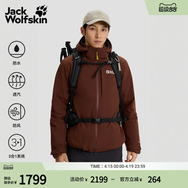 JackWolfskin狼爪早春新款JOYFUL男防水鹅绒三合一冲锋衣A65469