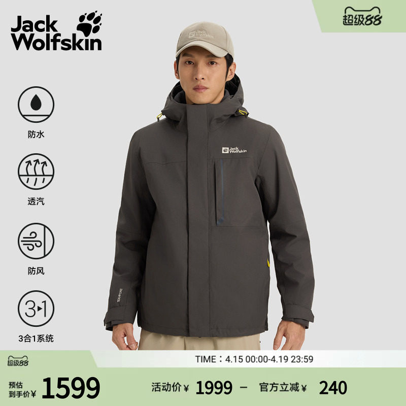 JackWolfskin狼爪早春新款TAUBENBERG抓绒三合一冲锋衣A65384