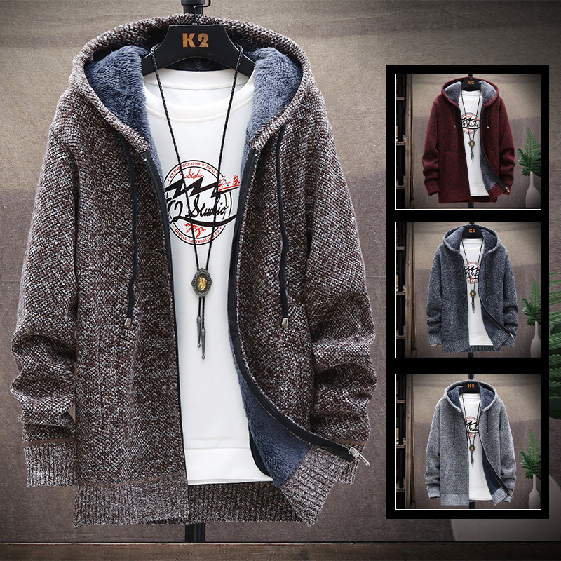 青年韩版潮流针织外套秋冬季开衫毛衣外穿冬装加绒加厚款时尚夹克