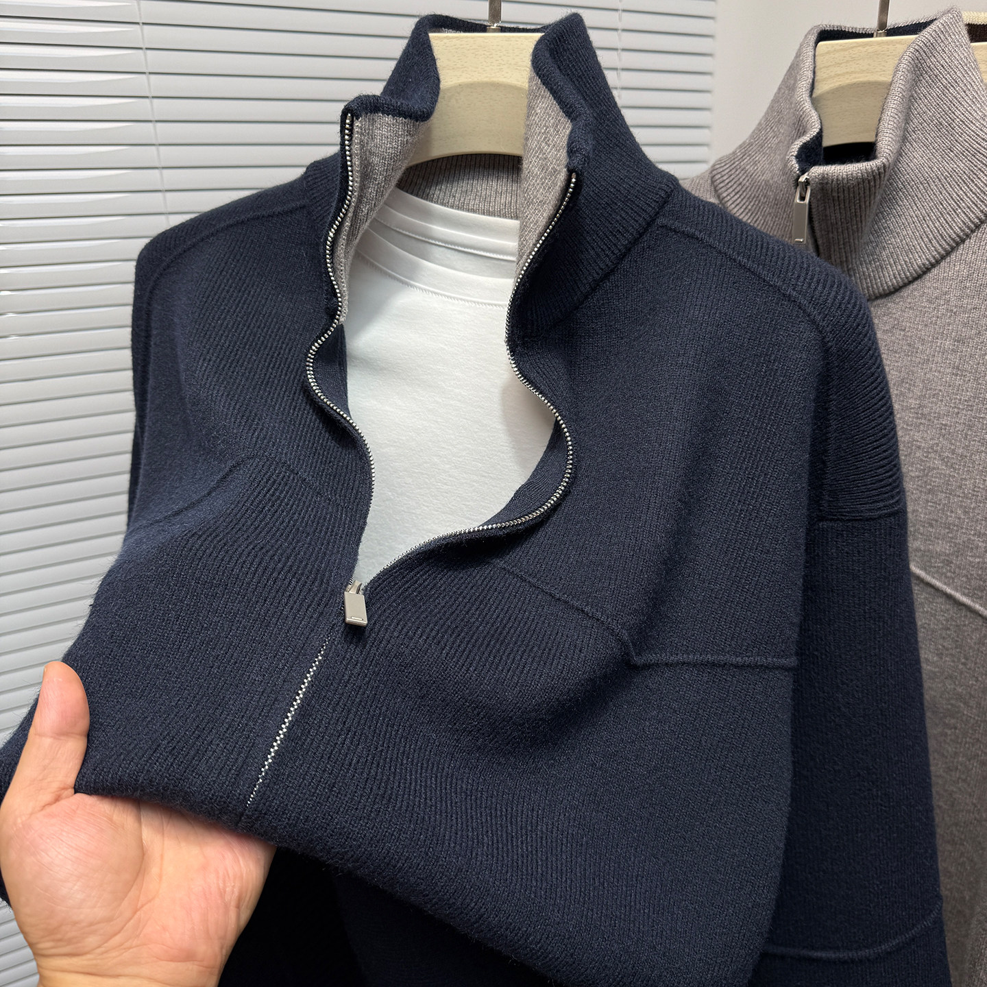 {含羊绒}男翻领开衫外穿夹克秋冬保暖毛衣针织成熟稳重中青年加厚
