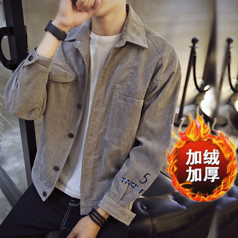 外套男秋冬款韩版保暖灯芯绒上衣服外穿潮流翻领青年宽松夹克衫潮
