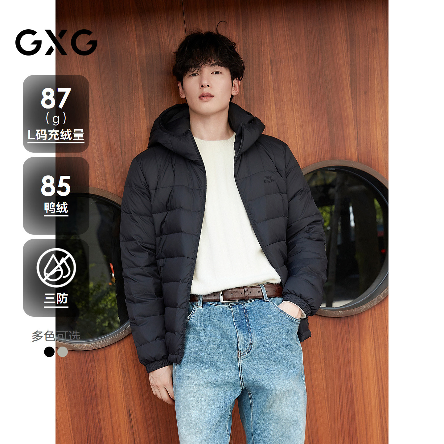 gxg.jeans男装秋冬款连帽短款羽绒服J24XD254015