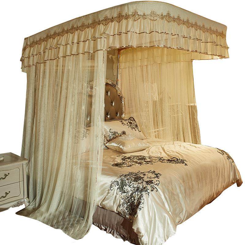 U型导轨伸缩蚊帐1.8m床双人家用轨道支架公主风1.5米加厚加密宫廷