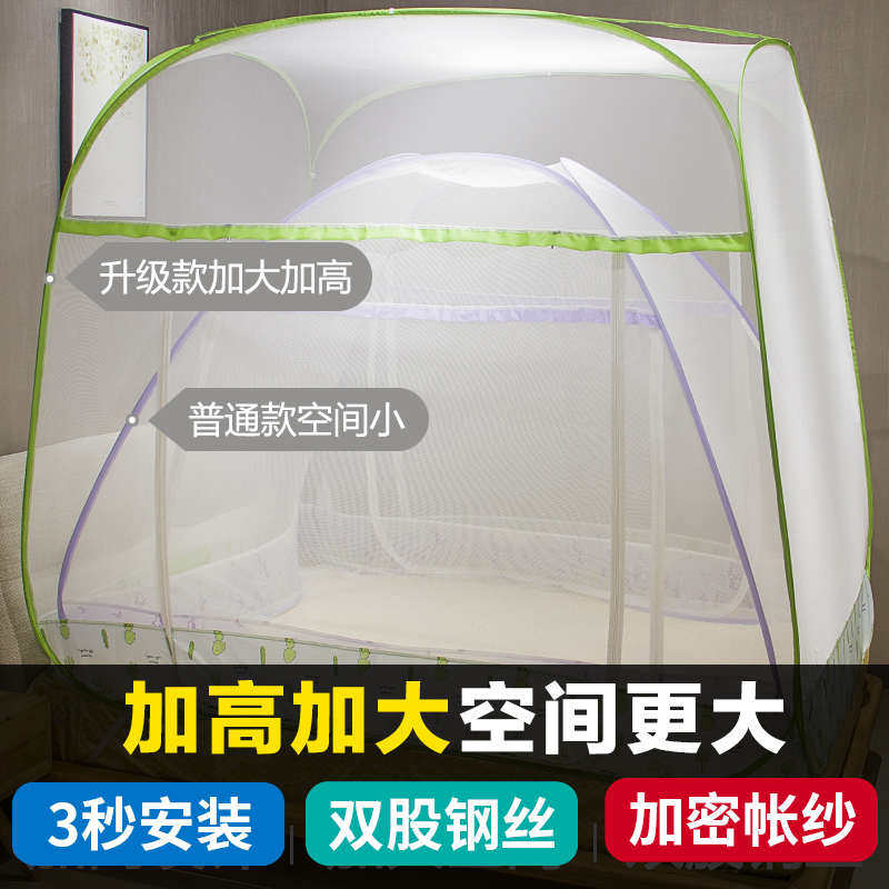 三开门免安装蒙古包蚊帐1.8m床双人家用加密加厚有底折叠纹帐1.5m