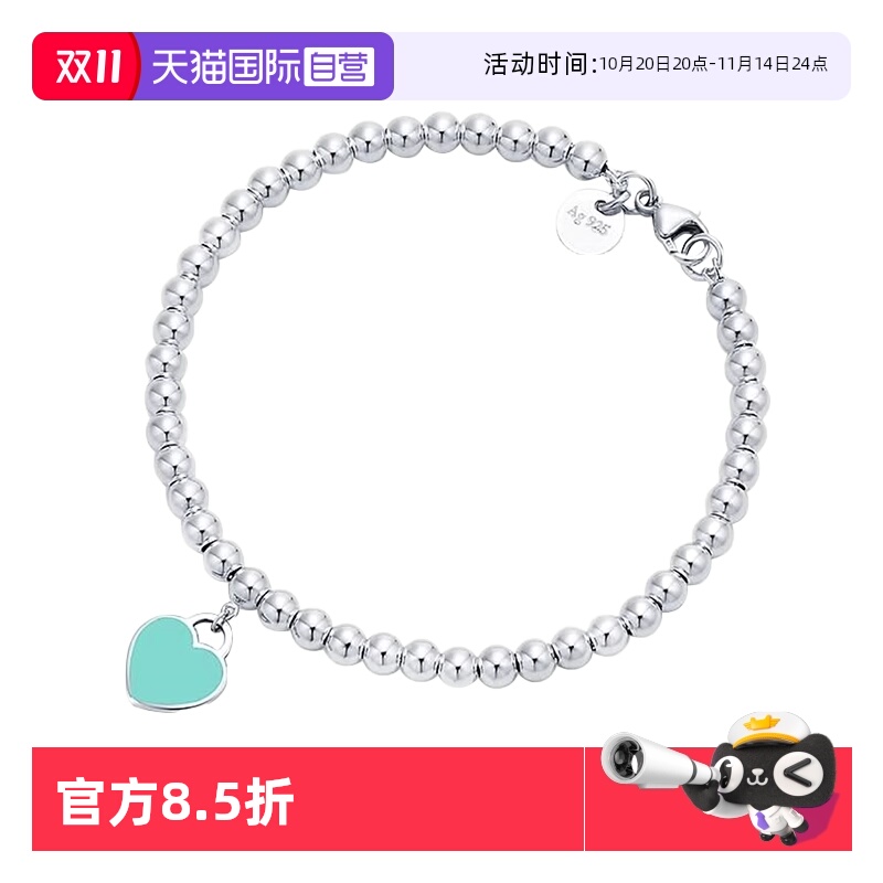 TIFFANY官网正品蒂芙尼手链925银珐琅蓝心形送女友情人节生日礼物