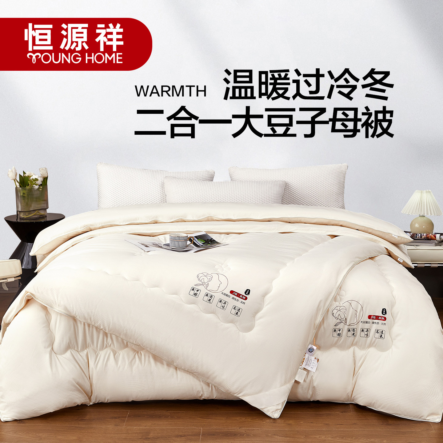 恒源祥大豆纤维华夫格子母被二合一拉链冬被空调被子加厚保暖被芯