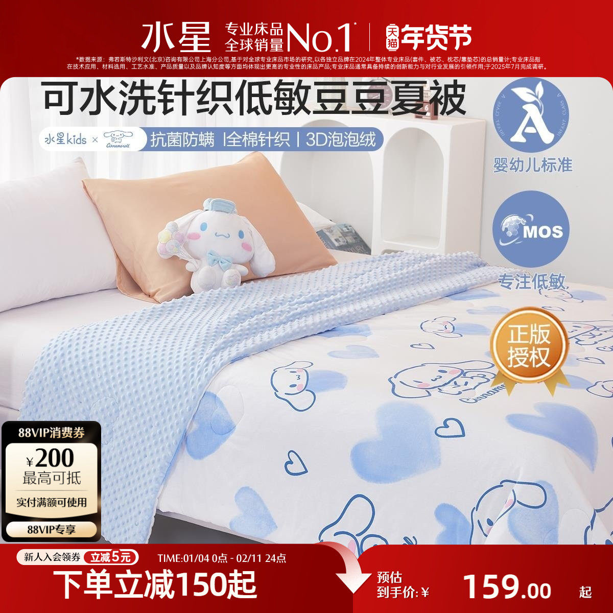 水星家纺A类抗菌豆豆夏被低敏针织夏凉被儿童卡通可水洗空调被子