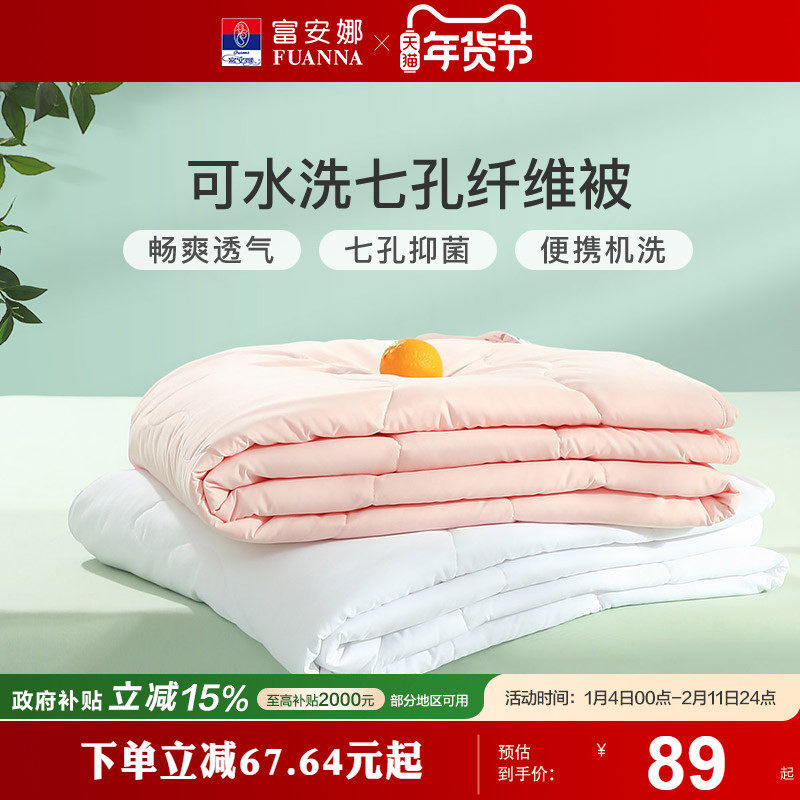 富安娜夏凉被可水洗机洗空调被子薄被芯单双人宿舍冬厚被四季被芯