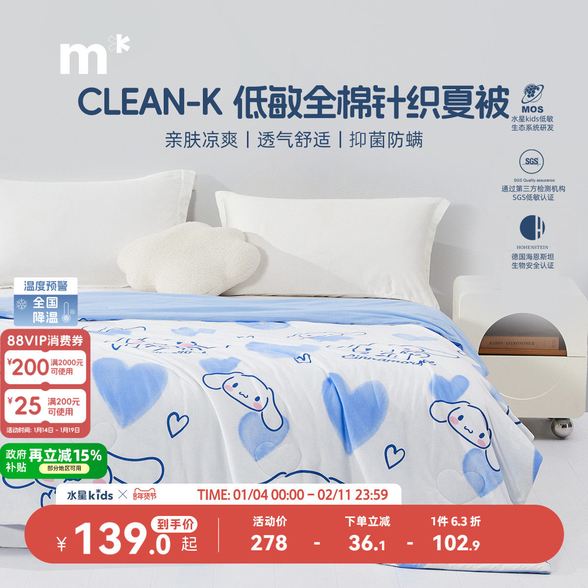 水星家纺全棉针织低敏夏凉被母婴A类抑菌可水洗儿童空调被子被芯