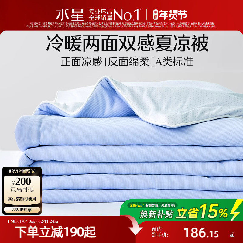 水星家纺夏凉被双感夏被A类抗菌可水洗机洗学生宿舍空调被子床品