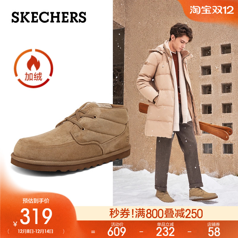 斯凯奇冬季新款男子舒适加绒加厚保暖棉鞋短筒鞋靴平跟百搭雪地靴