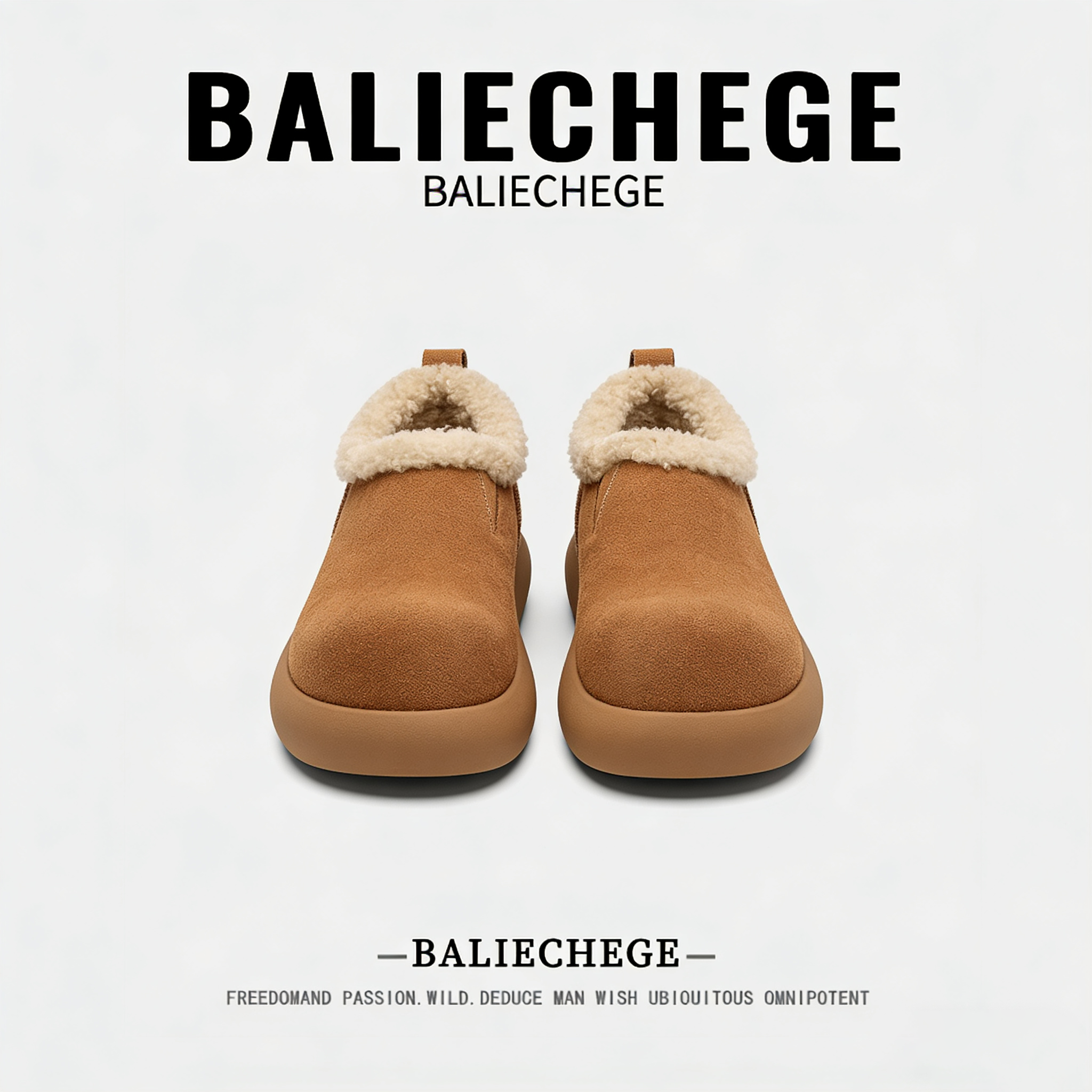 【法国BALIECHEGE专柜】中跟短筒雪地靴加厚毛毛靴冬季棕色保暖