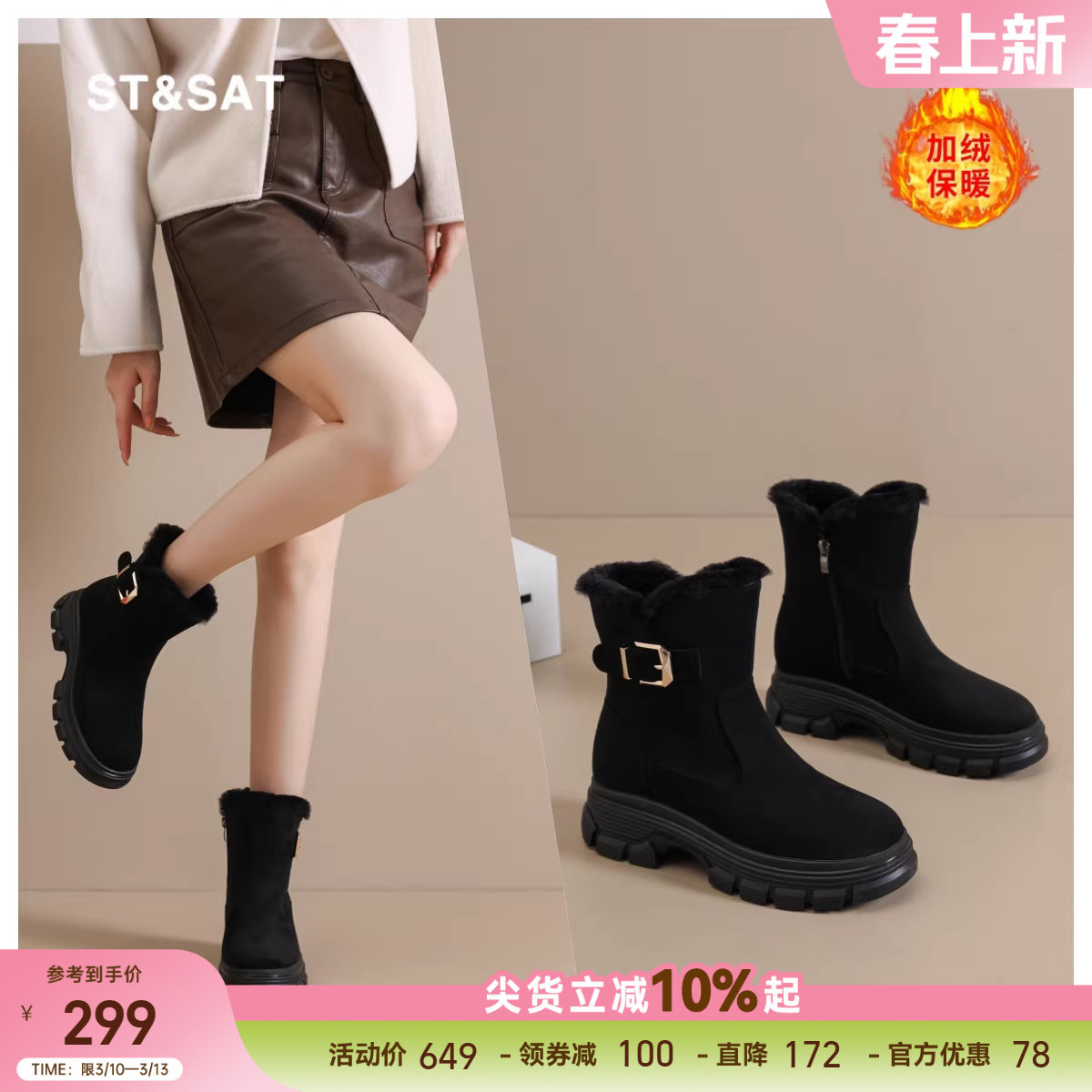 星期六厚底雪地靴女2025冬新款加绒加厚大棉鞋增高短筒马丁靴女靴