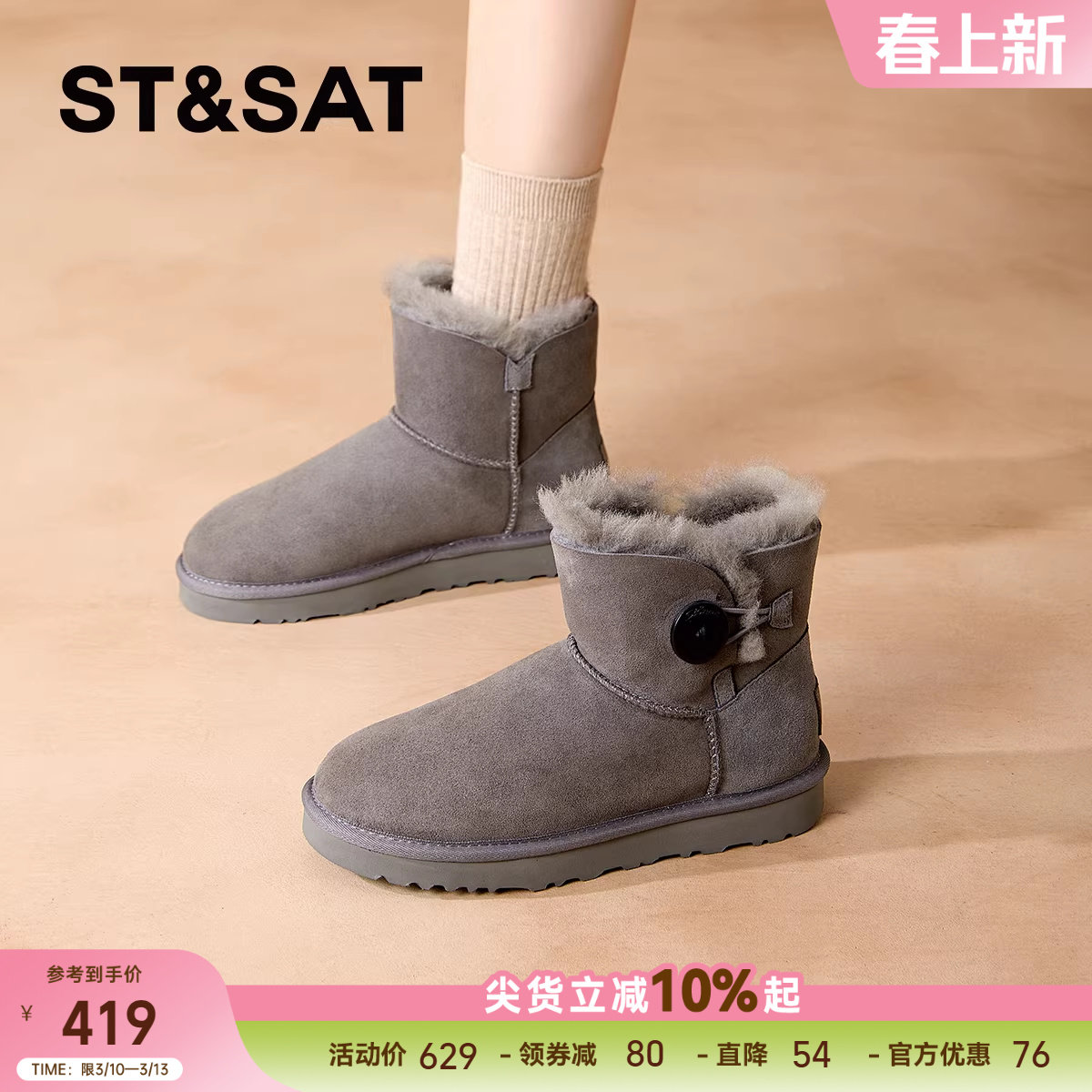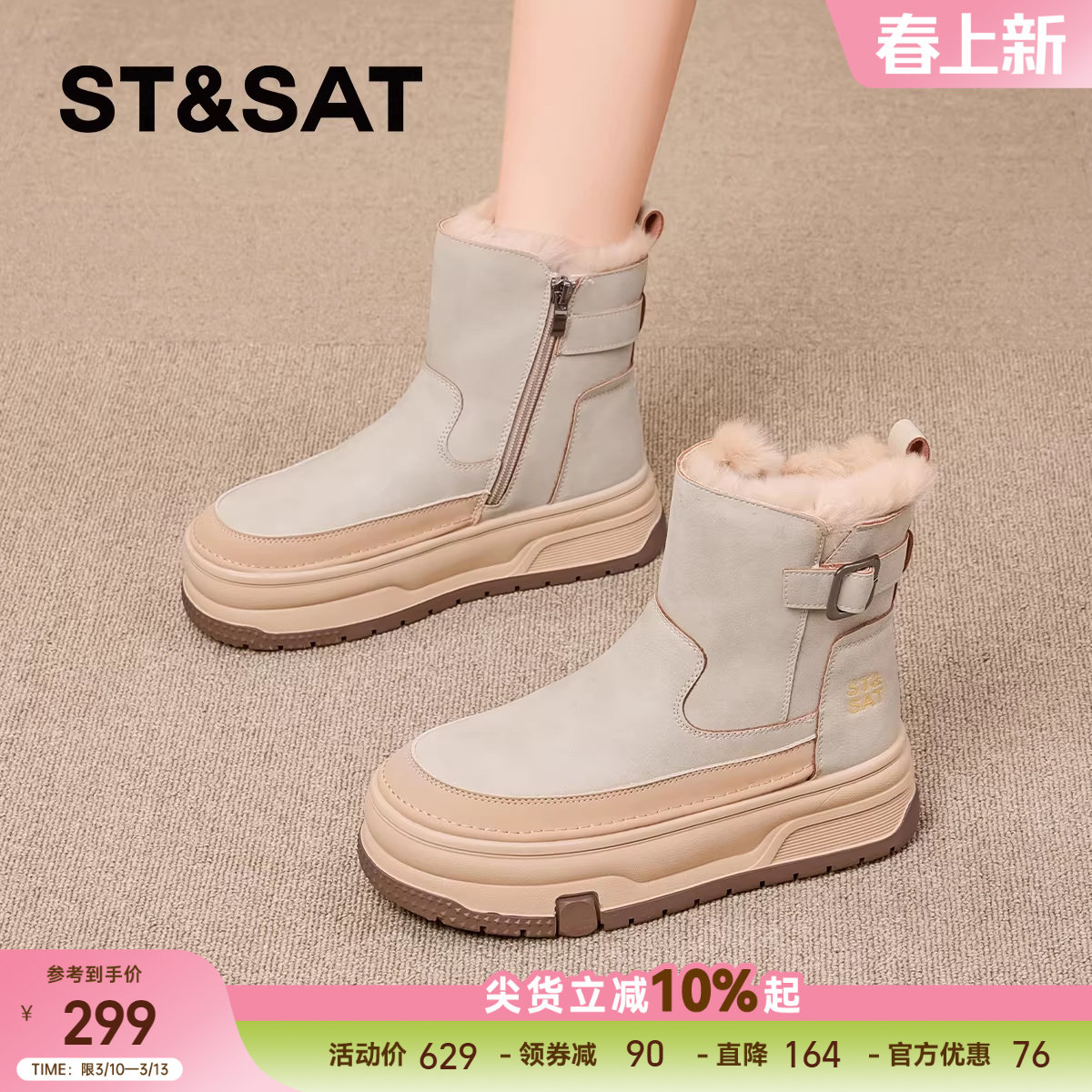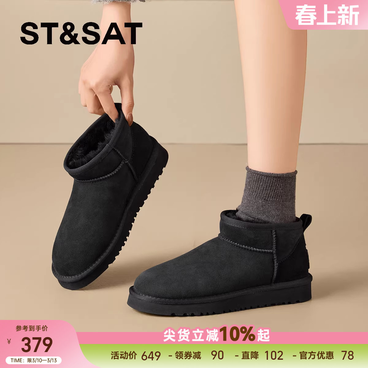 星期六加绒加厚保暖舒适雪地靴冬季休闲短筒羊皮毛一体真皮女鞋直