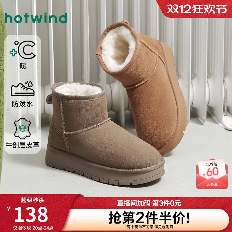热风厚底雪地靴女2025年冬季新款加绒加厚短靴保暖短筒棉鞋毛毛鞋