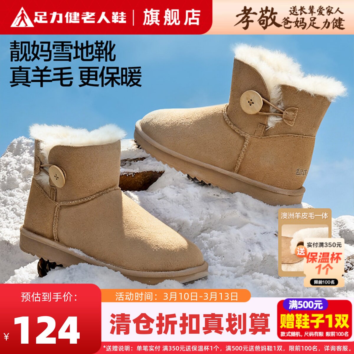 足力健女鞋冬季雪地靴加绒保暖短筒东北短靴羊皮毛一体加厚大棉鞋