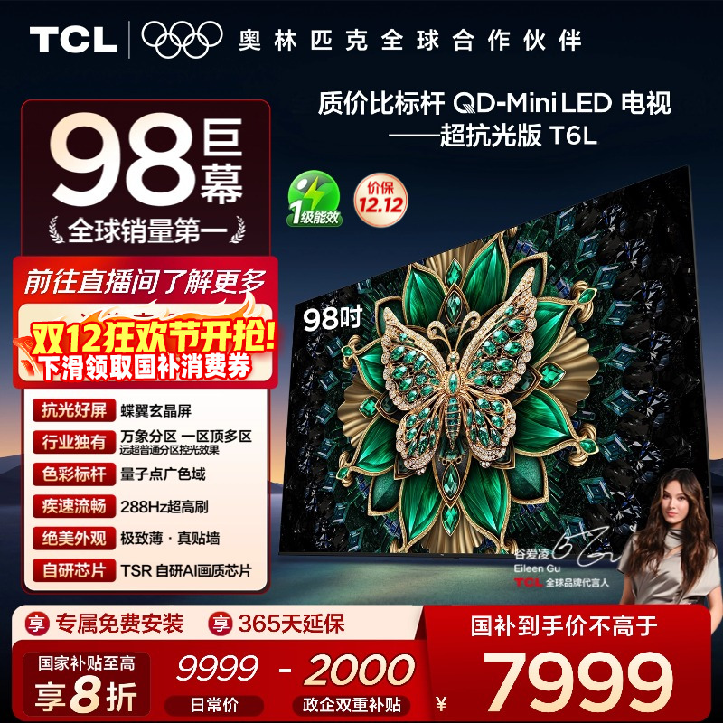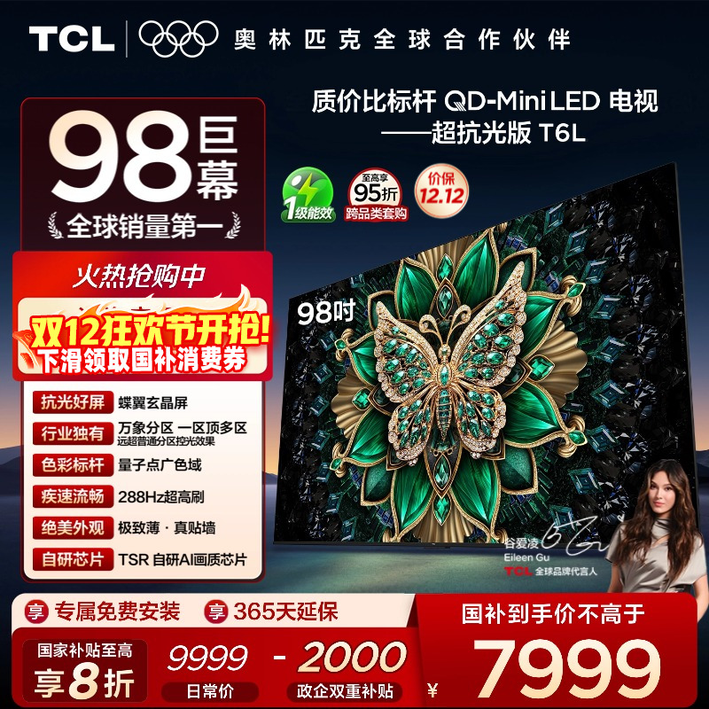 TCL电视 98T6L 98英寸 QD-Mini LED 万象分区 tcl超薄电视机100