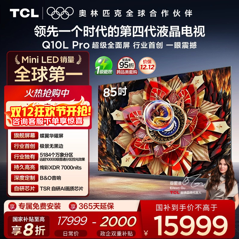 TCL电视 85Q9L Pro 85英寸 QD-Mini LED 蝶翼星曜屏 电视机官方店