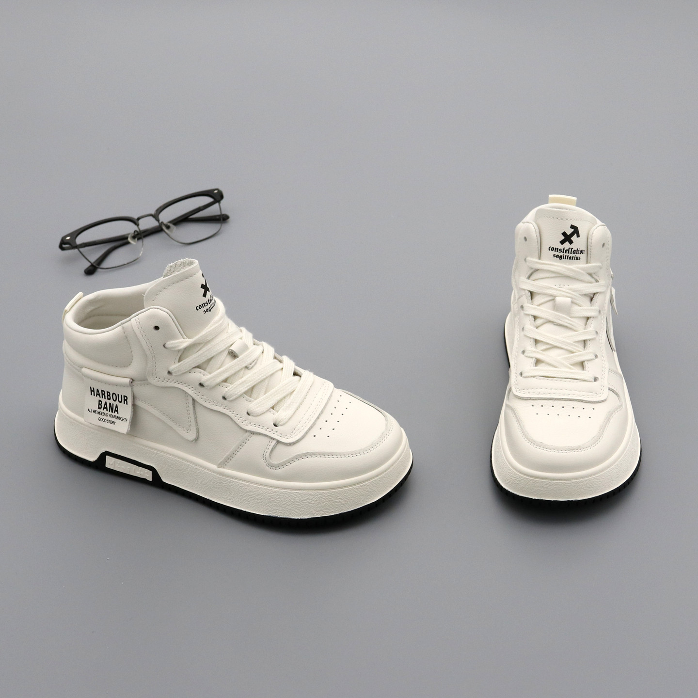 真皮高帮鞋女板鞋2026冬季圆头系带厚底学生休闲小白鞋女高邦单鞋