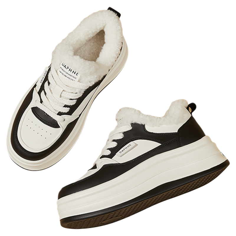 达芙妮女鞋厚底系带小白鞋2026新款冬季百搭爆款加绒保暖增高板鞋
