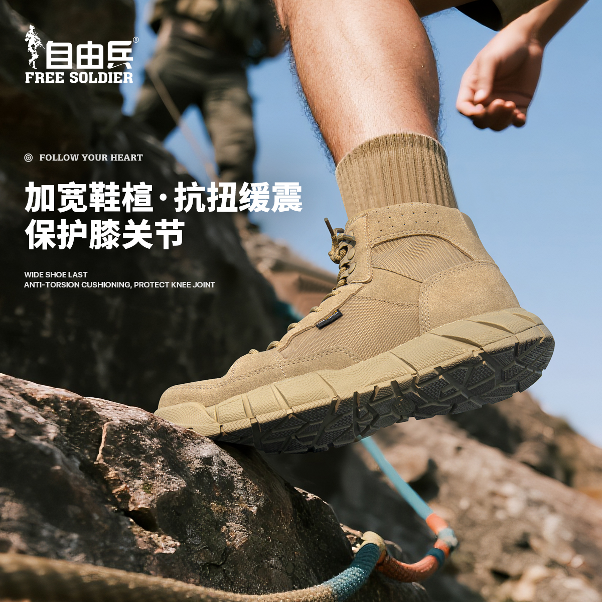 自由兵户外登山鞋男耐磨防滑透气徒步四季战术鞋超轻沙漠作战训靴