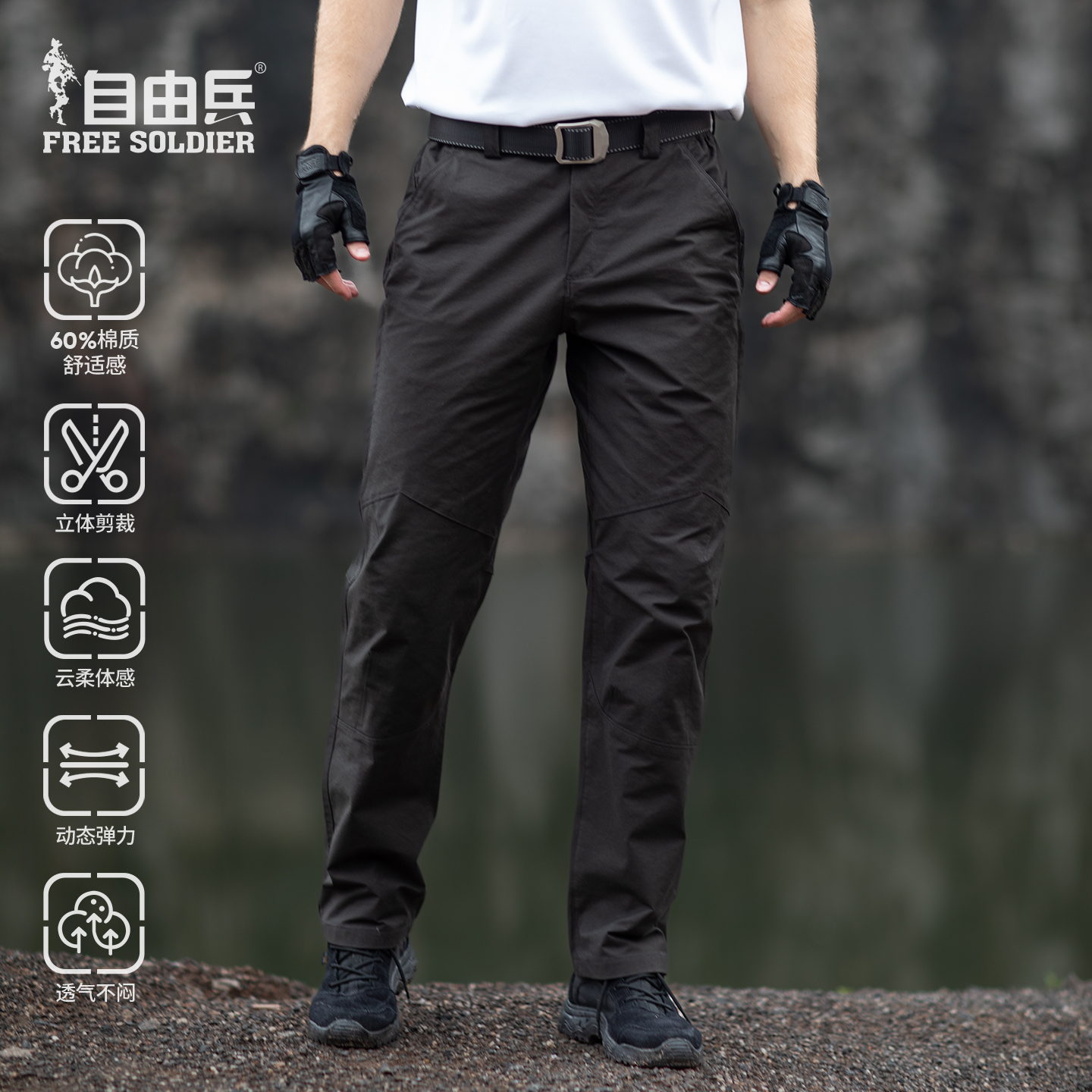 自由兵户外凌霜软壳裤男款防刮耐磨秋冬款防泼水冲锋裤多口袋长裤