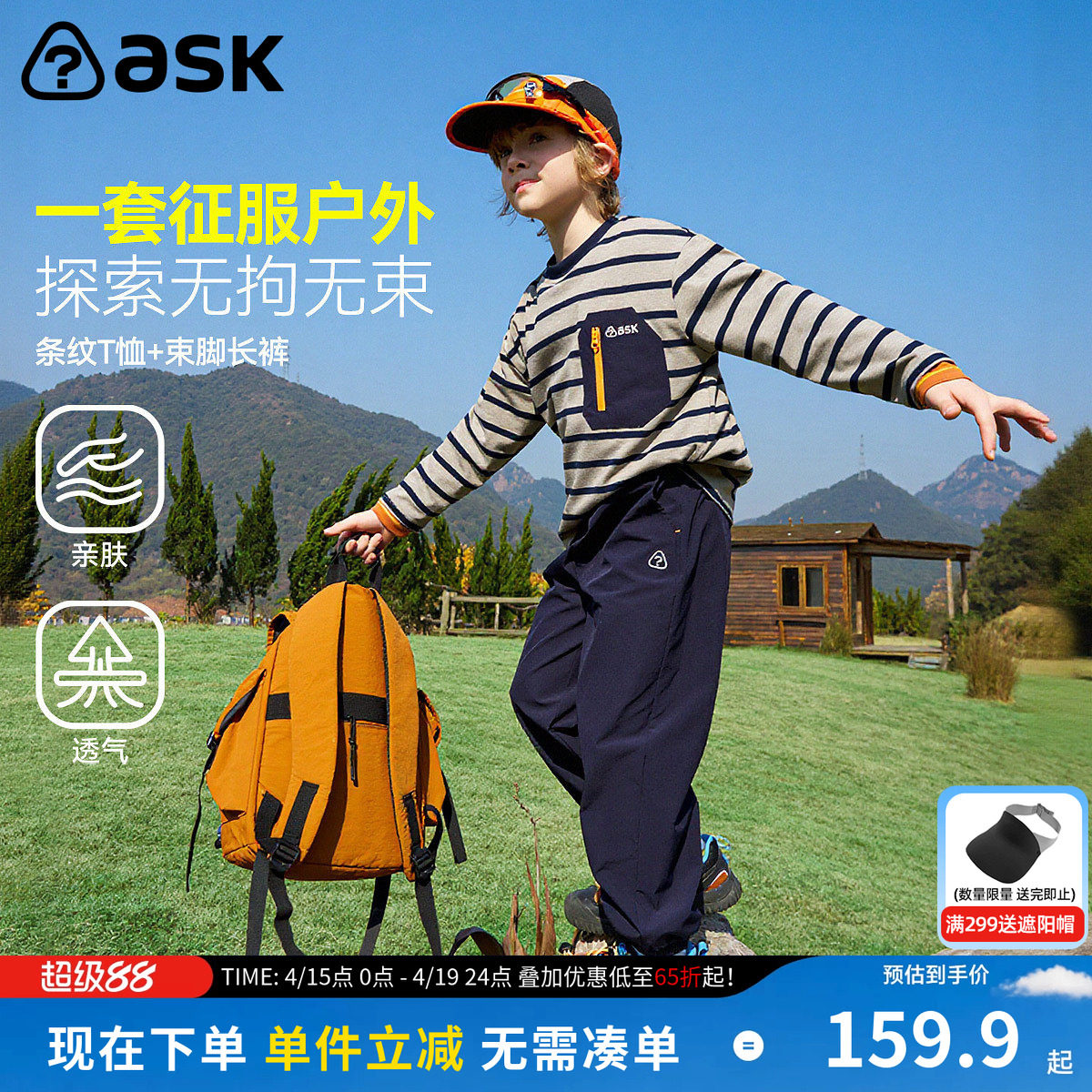 ask儿童套装2026春季新款男女童圆领条纹T恤中大童束脚裤子两件装