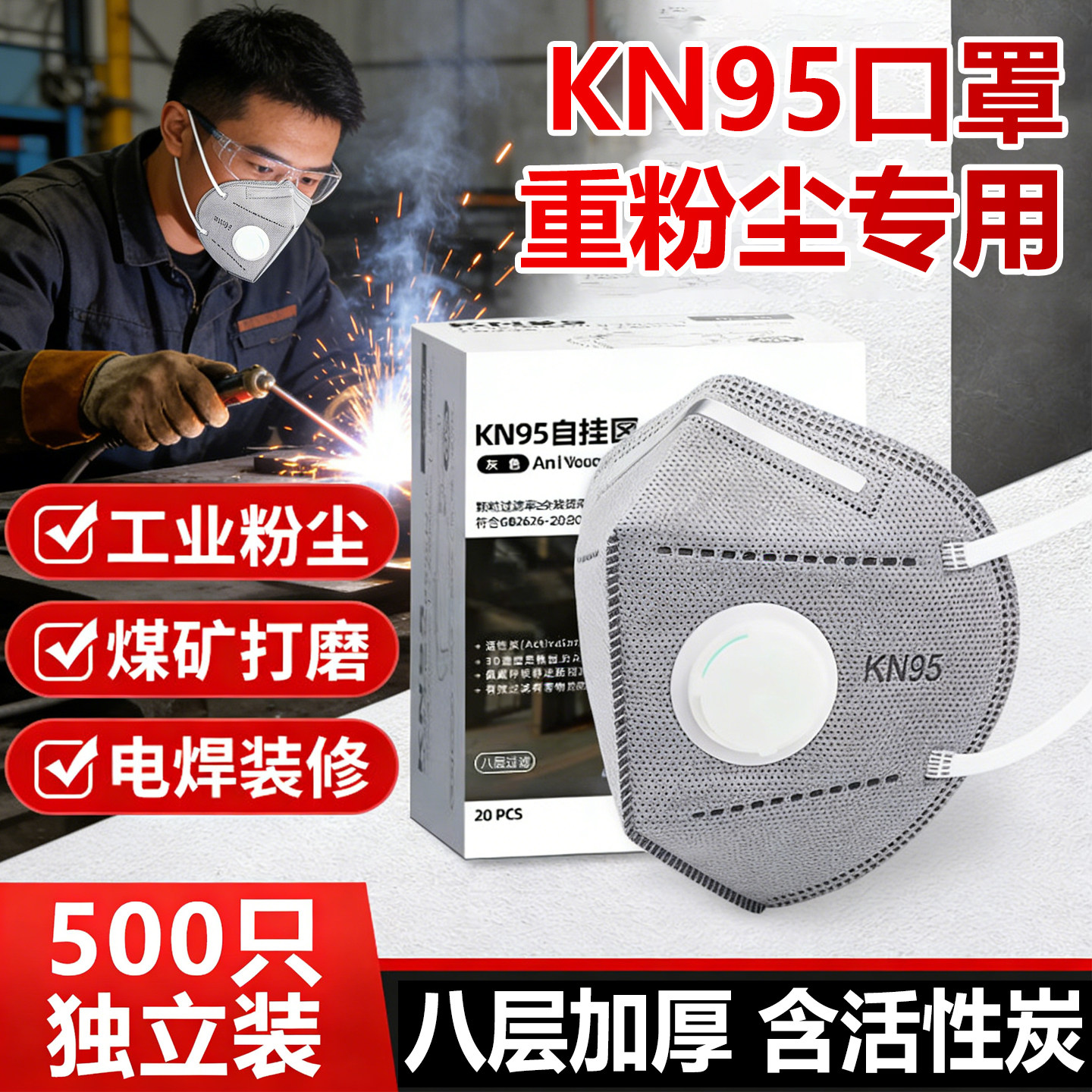 kn95活性炭透气八层呼吸阀防粉尘口罩甲醛电焊工打磨二手烟工地