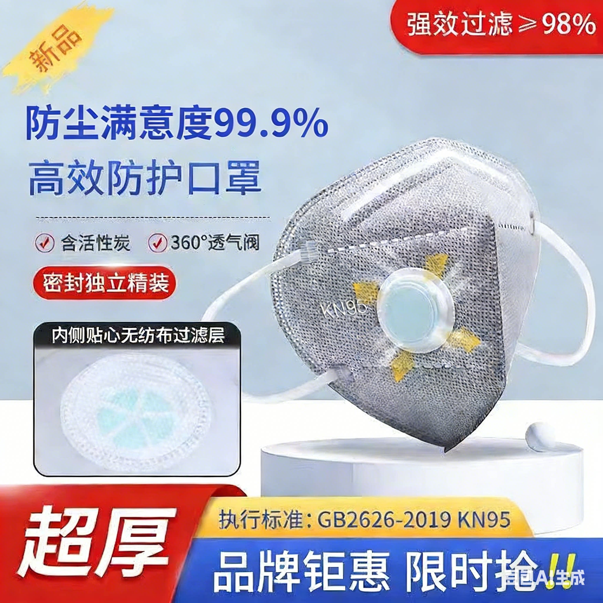 新升级头戴式呼吸阀不勒耳kn95防粉尘口罩工业专用甲醛打磨二手烟