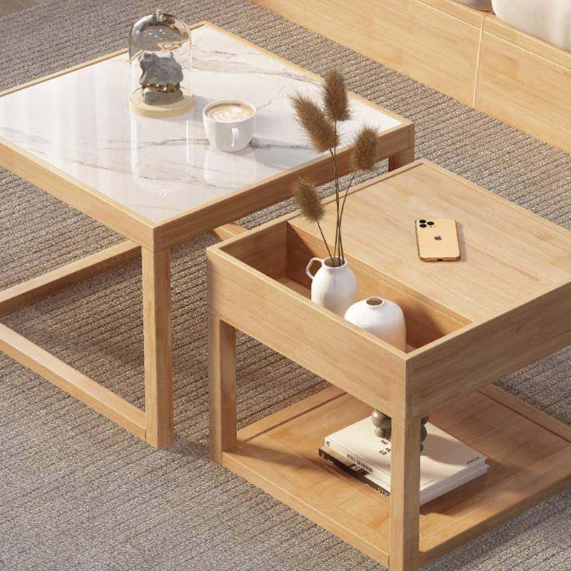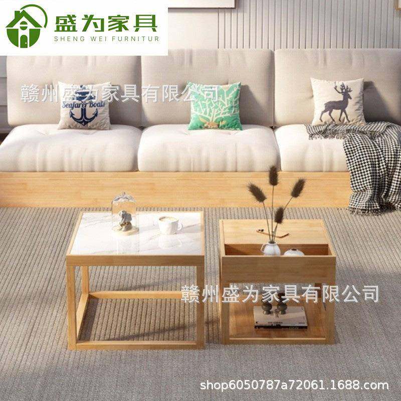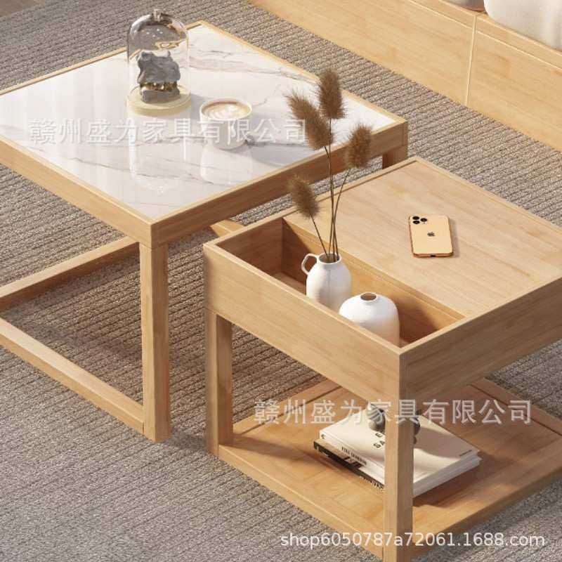 北欧全实木茶几日式原木小户型客厅岩板桌面正方形子母方几茶台桌